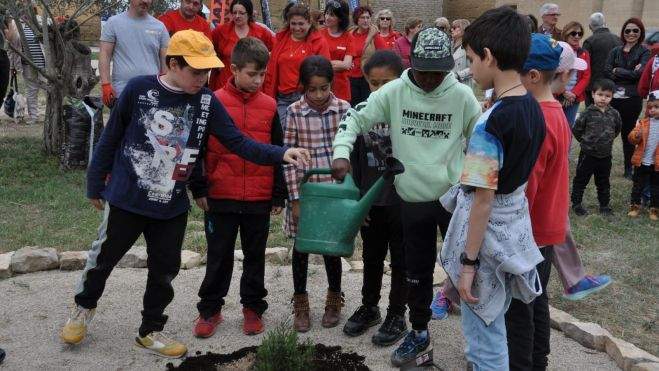 Yzuel ha explicado a los niños que “esta sabina es un símbolo de la vida: hay que luchar mucho para que nuestros sueños se hagan realidad. Gracias a la sociedad civil y a un pequeño ayuntamiento, como el de Villanueva de Sijena y sus asesores jurídicos, ha sido posible recuperar los bienes expoliados y tener la esperanza de que vuelvan por fin las pinturas de la sala capitular”. También ha otorgado una enorme importancia a que, cuanto antes, el monasterio cuente con una comunidad de religiosas, algo que la Plataforma pidió al Papa con 1200 firmas que la Orden de Malta hizo llegar a Roma tras la Jornada Sijena Viva.
