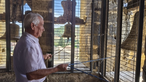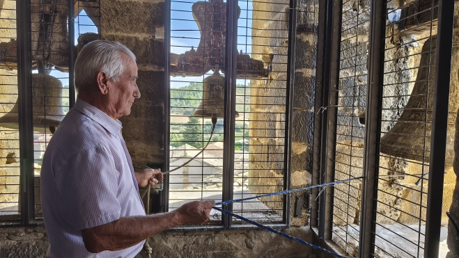 Tomás Borau, campanero aragonés de 89 años, ha ofrecido una magistral lección sobre los toques tradicionales, acompañada de demostraciones prácticas desde el propio campanario, fruto de toda una vida dedicada a la reparación de campanas y relojes en distintos pueblos de Aragón.