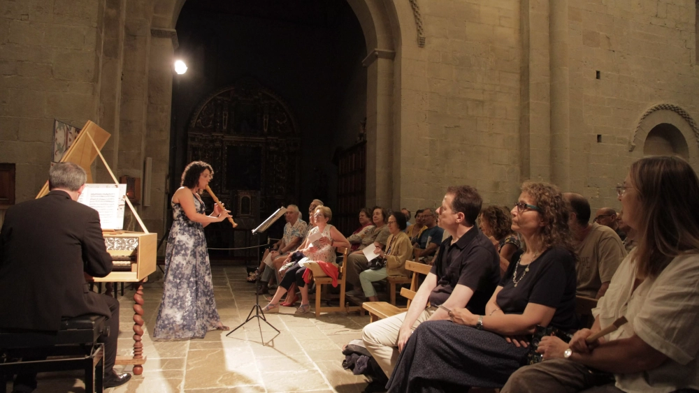 Tamar Lalo, flautista de pico israelí, ha actuado el viernes en la iglesia de Santa María de Santa Cruz de la Serós en una estupenda interpretación dentro del Festival Internacional en el Camino de Santiago con el aragonés Alfonso Sebastián (clavecinista) y un repertorio de Giuseppe Sammartini, comositor barroco. La música es cofundadora de La Ritirata, con la que el año pasado interpretó dentro de este festival en la iglesia de San Martín de Hecho.