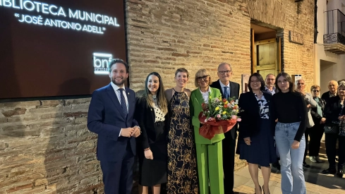 La concejal de Cultura le ha entregado una réplica de la placa de nominación de la ya Biblioteca Municipal ‘José Antonio Adell’, mientras que la alcaldesa ha agasajado a su esposa con un ramo de flores. El broche lo ha puesto la hija de ambos, Ana Adell que interpretaba dos canciones a la guitarra.