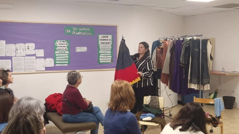 Recientemente, visitó la sede de la Agrupación Folklórica Santa Cecilia, donde se centró en los trajes del llano. Para Teresa, "la coherencia en la vestimenta es fundamental"; no se trata solo de llevar prendas tradicionales, sino de hacerlo "de manera adecuada y respetuosa con la historia y la cultura de nuestros antepasados".