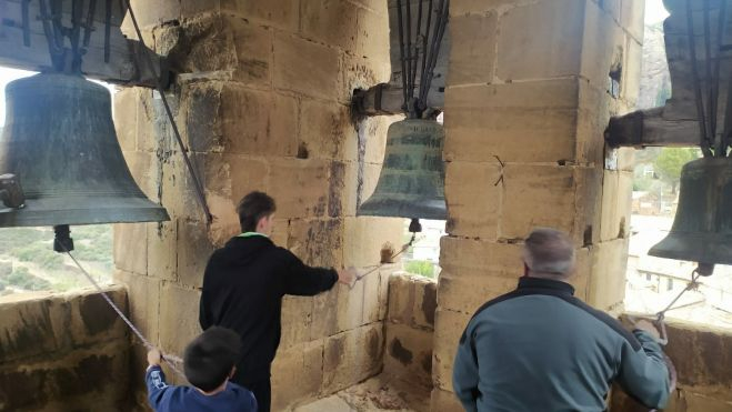 Mientras se alcanza el objetivo, tienen otros motivos de celebración. Ya colaboraron en el concierto de campanas que se realizó en abril de 2018, bajo el nombre “Echamos las campanas al vuelo”, que convocó Hispania Nostra, una de las entidades promotoras, junto a Campaners d’Albaida y el Museu Internacional del Toc Manual de Campanes, MitMac, con el apoyo del Ministerio de Cultura, de que el toque de campana manual fuera Patrimonio Cultural Inmaterial de la Unesco. El sábado pasado lo que hicieron fue festejar que ya se ha conseguido. Mayores y niños lo hicieron como todos saben en Agüero, mostrando el arte del toque tradicional de las campanas.