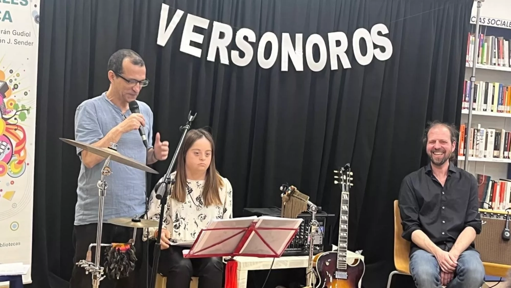 La Biblioteca Durán Gudiol ha celebrado diversos actos en torno al Día Mundial de la Poesía, con una programación que tuvo su punto culminante este viernes, con un micro abierto donde participó gente diferente recitando sus temas favoritos y la posterior actuación de Versonoros, que contó con una invitada especial, Andrea Otal, coincidiendo, además, con el Día Mundial del Síndrome de Down.
