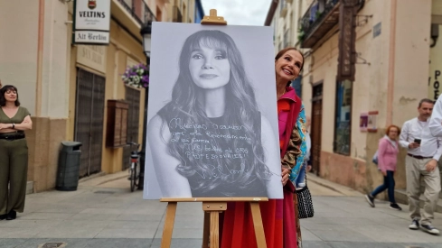 Simpática, amable, ingeniosa y con mucho que ofrecer. De esta manera se ha presentado ante el público oscense Victoria Abril, una leyenda internacional del séptimo arte, que ha viajado hasta la capital oscense para recibir, esta martes, el Premio Luis Buñuel con el que el Festival Internacional de Cine de Huesca va a reconocer toda su trayectoria. "Muchas gracias por este reconocimiento a mi carrera, mis bodas de oro profesionales", ha escrito en el cartel que lleva su rostro y que se le ha brindado para que estampara su firma.