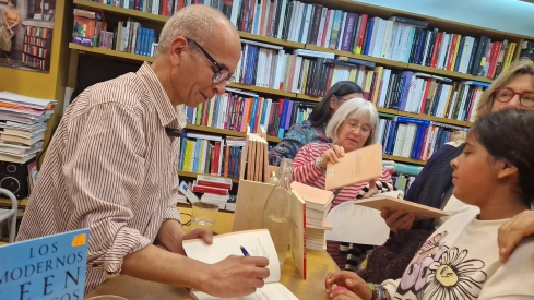 El profesor falleció el pasado mes de diciembre, pero el acto celebrado en la librería Anónima tuvo muy presente su recuerdo y se convirtió también en un pequeño homenaje, en el que no faltó su compañera, Carmen Carramiñana.