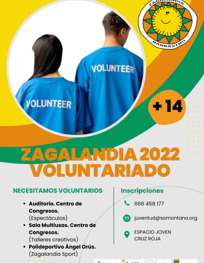 El Área de Juventud del Ayuntamiento de Barbastro ha iniciado la captación de voluntarios que ayuden en la organización y desarrollo de Zagalandia, que este año, como novedad, se desarrollará en tres espacios: el auditorio y la sala multiusos del Centro de Congresos, escenario de los espectáculos y de los talleres creativos; y el Polideportivo Ángel Orús, donde se desarrollará la actividad deportiva.