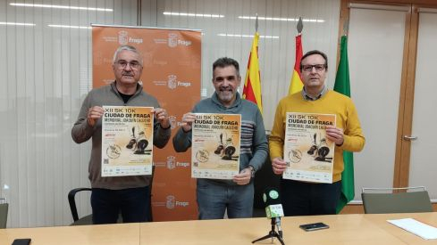 La fecha señalada será el 26 de marzo. Santiago Burgos, alcalde de Fraga; Juan Carlos Longán, presidente del Club Atletismo Fraga, y Jordi Esteve, el técnico municipal de Deportes, han presentado la carrera. En total se abren 400 plazas para la 10k y el reto que se marca la organización es superar los 300.