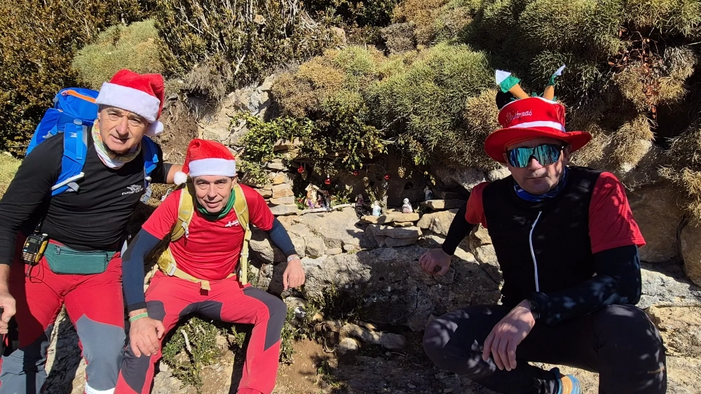 Al ritmo exigido por tal desnivel, han alcanzado el collado y el pico de Peiró, 1.563 metros, y en las faldas de Raya Espada o Pico del Grifo han disfrutado de turrones, polvorones, cava y algún café. Han cantado villancicos y el monte se ha llenado de Navidad porque muchos participantes llevaban gorros y otros atavíos de Papá Noel.