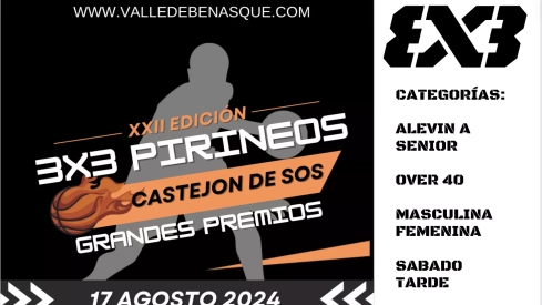 Nueva edición del Torneo 3x3 más longevo en nuestra comunidad, que este año celebrará su vigésimo segunda edición, fiel a su cita en el Valle de Benasque, fomentando esta modalidad que en su segunda aparición en unos Juegos Olímpicos ha proporcionado a España nada menos que una plata olímpica.