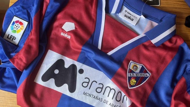 Este miércoles comenzaron a llegar las primeras camisetas retro de la SD Huesca. El club azulgrana, como el resto de equipos de la Liga Hypermotion, se ha sumado a la iniciativa de LaLiga para hacer una jornada retro que se celebrará este próximo fin de semana. El conjunto de Oltra lucirá la equipación este domingo (16:15h) ante el RC Deportivo.