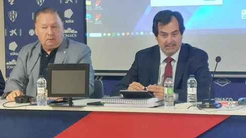 Agustín Lasaosa, presidente, y Ricardo Mur, consejero delegado de la Sociedad Deportiva Huesca han dado la bienvenida a los jugadores y cuerpo técnico de la plantilla de la Sociedad Deportiva Huesca, en los que han depositado la confianza para este 2025-2026 en la Liga Hypermotion.