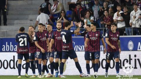 Incidencias: partido correspondiente a la jornada 9 del campeonato regular de la Liga Smartbank en el estadio de El Alcoraz ante 6.185 espectadores. Antes del inicio del encuentro Andrés Fernández recibió un homenaje por cumplir 100 partidos defendiendo la camiseta azulgrana. También se guardó un minuto de silencio por el fallecimiento del exguardameta del Huesca, Eduardo Navarro.