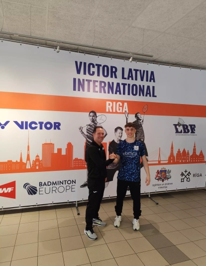 Bien puede sentirse "super contento" Alejandro Gállego (Bádminton Huesca La Magia) de su debut en un torneo internacional de categoría absouta, disputado en Letonia, donde cayó en tercera ronda individual y tuvo que retirarse en octavos de final de dobles como consecuencia de una lesión en el cuello cuando la cosa pintaba bien después de ganar los dos primeros encuentros.