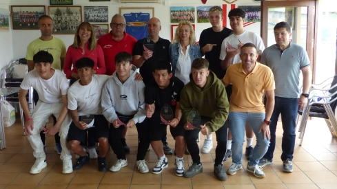 En el acto de presentación del torneo se rindió un pequeño homenaje a los siete jugadores del Sabiñánigo que han concluído su etapa juvenil.