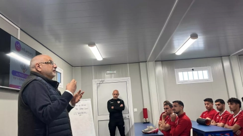 Recibido por Manuel Torralba, presidente de la Real Federación Aragonesa de Futbol, Lachos recordó que él no es entrenador de fútbol pero entrena los RRHH, "trabajo el manejo de sesgos cognitivos, la gestión de egos y los distintos estilos de aprendizaje, basado en Entrenamiento de Alto Impacto y Coaching Ontológico".