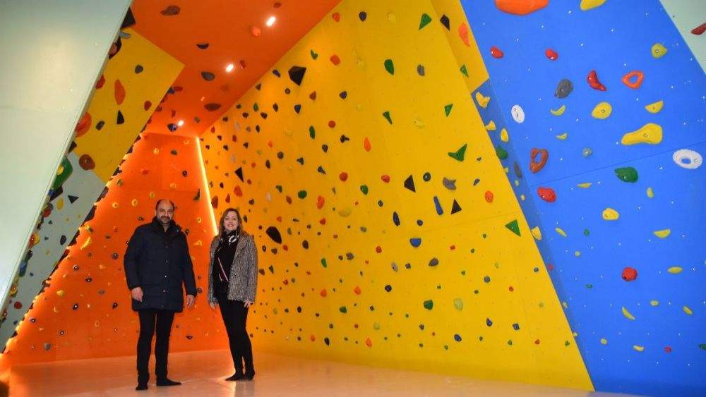 Además de las obras de acondicionamiento y equipamiento de la Sala Búlder, se ha renovado la superficie de escalada del rocódromo instalado en los años 90 en la pista polideportiva del pabellón Ángel Orús.