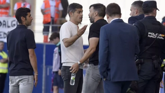 Eder Sarabia en estado puro tras derrota. Ha asegurado que ninguna de las dos amarillas del jugador expulsado lo era. "Al final, los que no queremos que exagere somos los tontos, y Javi -(Hernández) llevaba todo el día exagerando y los árbitros parece que no conocen a los jugadores. Saca el brazo y le saca la segunda amarilla. A seguir para adelante. Hoy tengo más claro que nunca que vamos a ganar los dos partidos y vamos a ascender, y por eso les he dicho a los jugadores que saquen la mala hostia que tenemos, la injusticia que hemos sufrido aquí hoy y vayamos para adelante con esa mala hostia a ganar en Málaga".