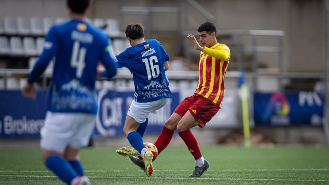 Aitor Pardo hacía cambios a la hora de juego para ir a por el partido y quitaba a Manau para dar entrada al delantero Blasco. También entraba Magu por Flo. Poco después, Torcal, con un buen remate de cabeza dentro del área, volvía a poner en apuros al guardameta catalán.