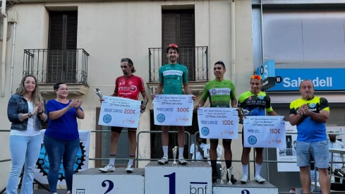 La prueba más antigua del calendario ciclista aragonés, el Gran Premio Villa de Binéfar, celebró este sábado su LXXX edición y lo hizo con un disputado y emocionante final que se resolvió a favor de Arnau Solé (Controlpack) tras cubrir el trayecto de 45,5 kilómetros en un tiempo de 1.02.34. Un margen de nueve segundos en la llegada al esprint sobre el que fuera doble medallista olímpico en Grecia y campeón del mundo en pista Sergi Escobar. Con el mismo tiempo entró Davinson Román (Huesca La Magia) y cuatro segundo después su compañero Bruno Garcés.