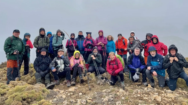 El grupo de Turismo por el Alto Aragón de Peña Guara realizamos este domingo la ascensión al pico Arnabón, de 1.552 metros, pico satélite del Tozal de Guara, con una cima plana y pasando desapercibido en su cara sur.