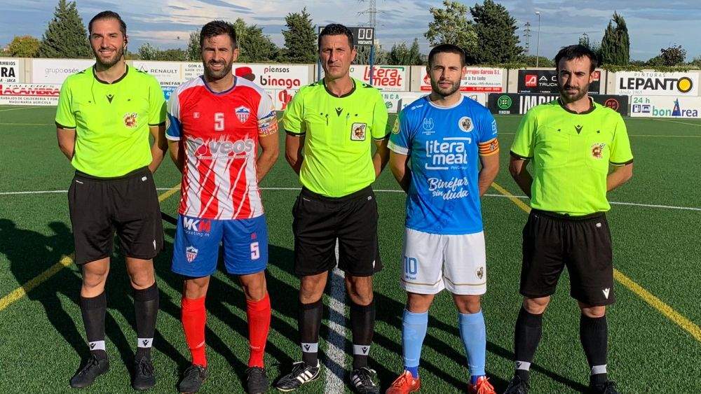 Árbitros y capitanes en Los Olmos de Binéfar.