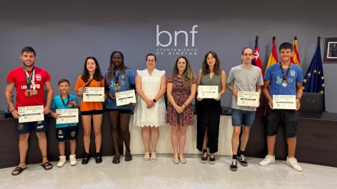 Todos ellos han recibido un diploma acreditativo de su hazaña de manos de las ediles. Alberto Bailac por ser Campeón de España en M35 en 400 metros vallas y además en relevos 4 x 100 metros. Y su compañera del Club Atletismo Binéfar, Elena Gasquet, por proclamarse también Campeona de España en M 35 relevos 4 x 100 metros.