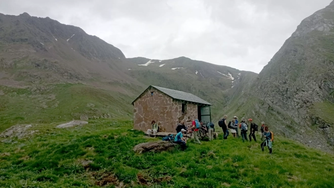 Sobre las 8:30 iniciamos el recorrido en el camping El Forcallo, después de una breve subida, 10 minutos siguiendo la GR11, llegamos al refugio de Biadós, a 1.760m. Desde aquí comenzamos la parte más dura de la ascensión, que nos llevó a la cabaña del Sarrau, tras más de una hora de marcha, por un camino que discurre paralelo al barranco de Orieles. A casi 2060 m, todavía nos faltaban 340 para llegar al piso alpino.