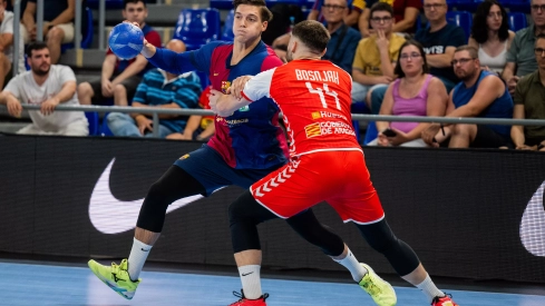 Lo cierto es que los de Nolasco han hecho un primer tiempo muy meritorio, sin amedrentarse tras el 3-0 con la firma de Aleix Gómez (2) y Palomino. El internacional ha disputado un acto inicial en su línea eléctrica y genial y ha sido quien ha impedido los acercamientos del Bada. Sin, embargo, no se han amilanado los debutantes Bosnjak y Soares que se han encargado de abrir el electrónico para Bada. La ditancia entre cuatro y seis goles se ha instalado, con el Barcelona a rachas. Siempre Aléix (6 en la primera mitad), ora Aitor Ariño, que si ahora Javi Rodríguez, u Ortega, y luego salían Janc y N'Guessan y reforzaban el poderío local. Pero no se ha amilanado en ningún momento Bada, que ha encarado al gran Pérez de Vargas con desparpajo por parte de Frank Cordies, de Miguel Malo, de Artur Parera o de Adriá Pérez, para cerrar con gol de Cánovas desde el extremo (19-13).