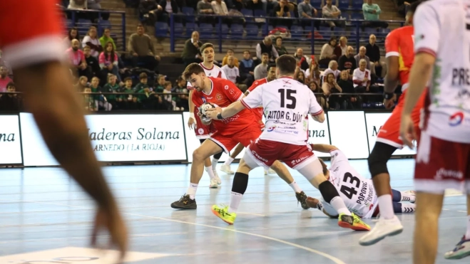 Al ataque, Charly Pérez, Samuel Cordiés, Tchitombi, Artur Parera, Frank Cordiés y Dani Pérez anotaban el primero (17-13), y confiaban en portería en Fradj Ben Tekaya. Tres exclusiones consecutivas de Popovic, Luis Juárez y Pergel dejaban con dos menos a los locales y, sin embargo, marcaba Álvaro Martínez y erraba Frank Cordiés en una frivolidad inaceptable. En minutos de inferioridad, 2-0 para los riojanos (21-14) con goles de Álvaro Martínez y Zaja, gol de Artur y réplica de Álvaro Martínez. Inoperancia ofensiva, negligencia en retaguardia.