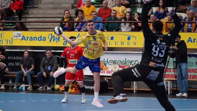 Minutos de lío morrocotudo con desacierto de los árbitros, desconcertados, y cuatro contra cinco. Dos oportunidades para ampliar pero Vasco Teixeira quería emular a Ben Tekaya, aunque el tunecino se le hacía gigante al ataque de Aranda y Óscar García colocaba los seis (22-28), que recortaba pronto Tamayo. Vuelta de las exclusiones y gol de David López (24-28) tras falta en ataque. Los colegiados se habían comido el silbato. Artur Parera replicaba. Cinco arriba y siete minutos. Había que defender con uñas y dientes. Y, si abía gol amarillo, replicar con rojo. 25-30 por Charly Pérez. Rogonovs anotaba demasiado fácil y José Francisco Nolasco pedía tiempo muerto (24:48).