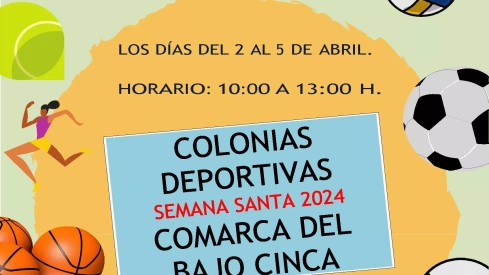 En colaboración de los distintos Ayuntamientos de la delimitación comarcal, se han programado las colonias deportivas en Semana Santa, una opción de ocio y tiempo libre para los días 2, 3, 4 y 5 de abril en los diferentes espacios municipales de cada localidad, donde no exista ninguna otra alternativa de ocio para esos días.