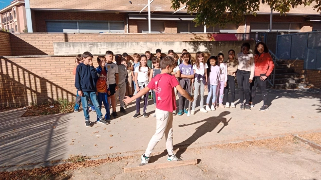 Durante siete días de octubre, en el CEIP Sancho Ramírez el alumnado de 4º a 6º de Primaria ha estado realizando en clase de Educación física tiro de barra Aragonesa.