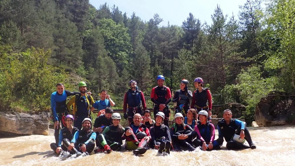 Han sido alrededor de 6 horas de actividad, con paradas, en la que 19 barranquistas hemos disfrutado a tope, en uno de los barrancos acuáticos más bonitos del Pirineo (que no Prepirineo).