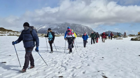 En el punto de partida, las instrucciones y recomendaciones de Javier Cruchaga. "Es la última marcha de preparación, la próxima será la prueba. Hoy se presenta un día especial, revuelto. Tendremos un poco de aire, tendremos un poco de barro, tendremos un poco de nieve y al final tendremos un buen entrenamiento que es lo que queremos hacer. Hoy no habrá río pero algún barranco, algún charco, habrá que pasar".