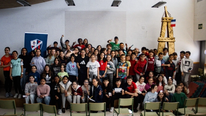 Jornada especial en el CEIP Pirineos-Pyrenees de Huesca con la llegada de 'Tu equipo en tu clase'. Los jugadores de la SD Huesca Diego González y Bea Parra han visitado este miércoles a sus alumnos de 6º de Primaria. "Gracias por la acogida, por el interés y por demostrar, una vez más, que el futuro azulgrana está asegurado", publicaba el club en redes sociales.