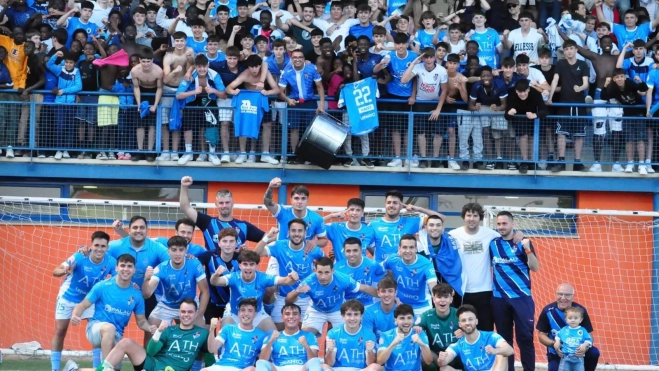 Día para el recuerdo en Los Olmos que ha celebrado una gran victoria del CD Binéfar en la ida de las semifinales del playoff de Tercera RFEF ante el Huesca B. Comunión total entre el equipo y la grada, que ha terminado botando junto a los jugadores.