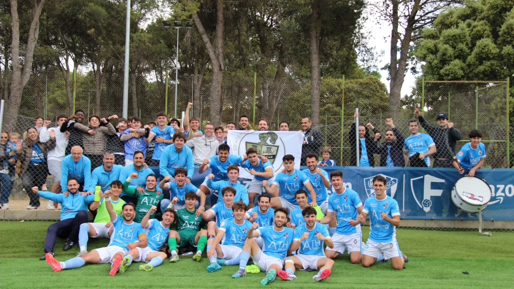 Los jugadores del Binéfar han terminado botando de alegría junto a su afición en la Base Aragonesa de Fútbol. El punto cosechado ante el Huesca B este domingo le permite sellar de forma matemática su presencia en el playoff de ascenso a Segunda RFEF a falta de una jornada para el final.