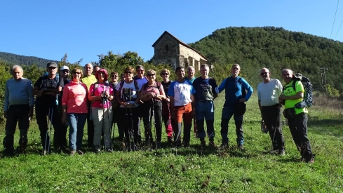 Dejamos estas devociones prendidas por los muros de la ermita y bajamos hacia el puente que sortea el río Aragón Subordán para entrar en Echo y junto a la carretera donde nos esperaba el autobús dar por finalizada la caminata, contentos con el buen día que el dios sol nos había regalado.