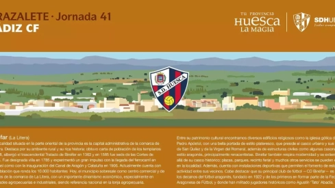 Última jornada a domicilio de la temporada 2024/25 de la SD Huesca, que visitará el Nuevo Mirandilla de Cádiz. El club azulgrana, tal y como ha venido en cada jornada a domicilio, esta vez homenajea a la ciudad de Binéfar en esta fecha.