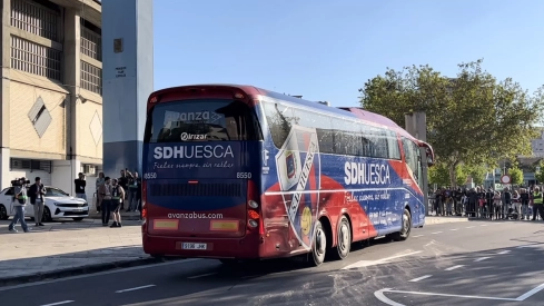 Hostilidad en un gran ambiente. Así ha sido recibida la expedición de la SD Huesca a su llegada a La Romareda este domingo a eso de las 19:20 horas.