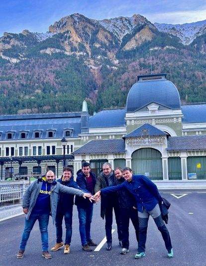 12 de enero de 2023, Canfranc. Dada la trascendencia internacional del proyecto, la candidatura CANFRANC-PIRINEOS 2025 viene impulsada y liderada por la Diputación General de Aragón, cuyo director general del Deporte, Mariano Soriano, ha sido el anfitrión del acto este jueves. Han asistido también el gerente de TuHuesca, Fernando Blasco, el alcalde de Canfranc, Fernando Sánchez, Alex Varela, director de la Canfranc-Canfranc, y Sergio Mayayo como representante del consejo mundial World Mountain Running Association (WMRA).