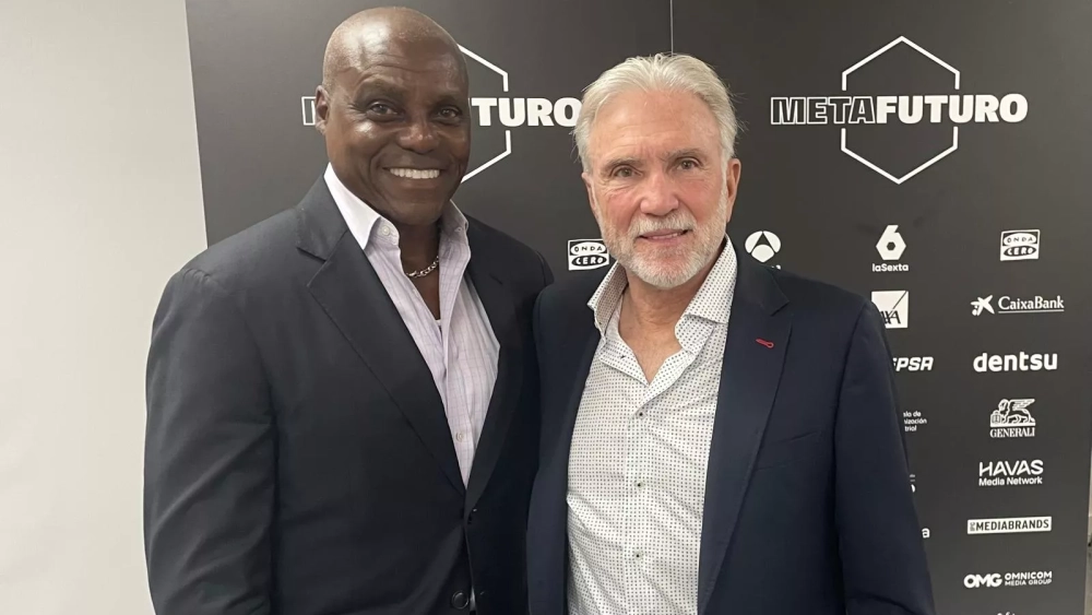 Un reencuentro feliz entre dos campeones que, además, son amigos. Carl Lewis ha visitado Madrid recientemente para participar en la tercera edición de Metafuguro que ha organizado Atresmedia y en la que han confluido personalidades como el filósofo Yuval Noah Harari, Dimitri Murátov, periodista y Premio Nobel de la Paz en 2021, Chema Alonso de Telefónica o el cocinero Dabiz Muñoz.