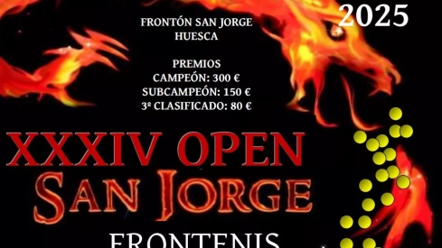 Este sábado se disputa en el frontón San Jorge de la capital oscense la trigésimo cuarta edición del Open San Jorge de Frontenis que se encuentra dentro de las actividades que el Ayuntamiento de Huesca ha programado para la festividad del patrón de Aragón y que organiza el Club oscense de Pelota.