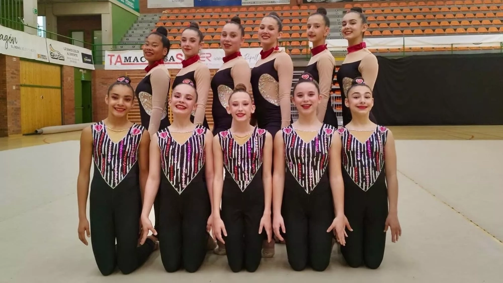 Y en ese empeño, el conjunto Infantil Absoluto logró una de las dos plazas que había en juego al lograr la victoria con 13,900 puntos. El conjunto Junior, con su ejercicio de cinco aros, se quedó con la miel en los labios ya que fue tercero (16,800) muy cerca del Zaragozano A, que lobró el billete a Santander con 17,000.