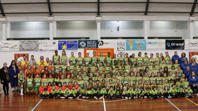 Una fiesta por todo lo alto. El Club Baloncesto Femenino Huesca presentó el pasado sábado 24 de febrero a su extensa cantera. Lo hizo en el Pabellón del Parque, lugar hasta el que acudieron 176 jugadoras que ahora mismo forman los 15 equipos del club oscense, desde psicomotricidad hasta supersenior.