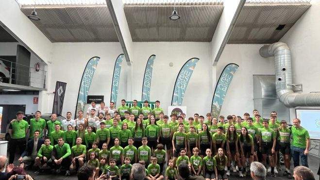 Uno de los momentos más emotivos ha llegado con la presentación de la Escuela, que en la actualidad cuenta con un total de 40 pequeños y pequeñas que desprenden esa ilusión por el mundo de la bicicleta. Algo que ha significado un crecimiento exponencial en los últimos años. Todos lanzaron un aplauso al cielo dirigido a la figura de Ernesto Escolano, uno de los grandes implicados en la formación en el ciclismo base aragonés. Pocos minutos antes también han salido a recibir su aplauso el equipo cadete, el junior, BTT, elite y Sub 23. La presentación del equipo de triatlón ha cerrado una mañana en la que se ha mostrado con cara y ojos todo el potencial del Club Ciclista Oscense.