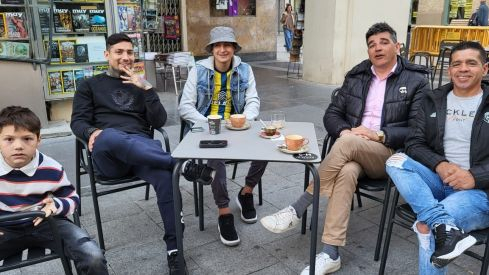 Ezequiel Ávila sentado en la terraza del Rugaca, con su amigo Alfonso Borbón y parte de su familia. Es el antidivo. Las raíces humildes, bien procesadas, conducen a una normalidad en la conducta que se agradece. Incluso en alguien acostumbrado a que miles de gargantas aclamen su nombre, se valora más la sencillez con la que saluda, da la mano, abraza y besa. Es el Chimy en estado puro, ese ídolo de una ciudad pequeña pero agradecida como es la de Huesca.