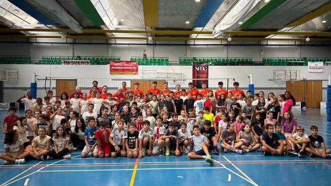Barbastro acogía este pasado martes y por quinto año consecutivo una jornada de promoción del voleibol con el Pamesa Teruel Voleibol como protagonista. En esta ocasión, y como hace ahora casi un año, tomaba parte también en la jornada el Club Voleibol Sant Pere i Sant Pau, igualmente de Superliga. Ambos combinados se enfrentaron en el Ángel Orús, pero antes y durante toda la mañana, los jugadores del Pamesa Teruel han ofrecido un clínic para escolares en el que han participado 300 pequeños.