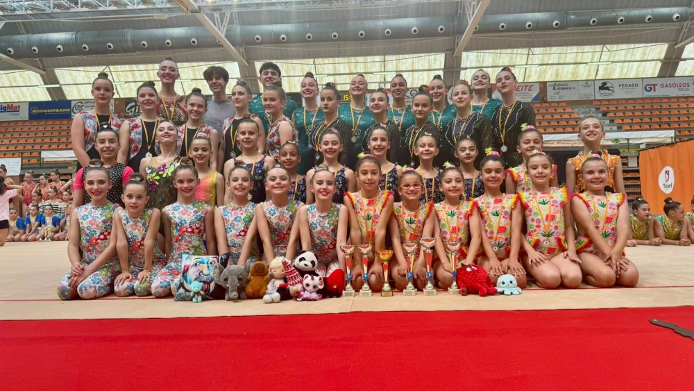 En conjuntos, las tres medallas de oro fueron para el Junior A (5 pelotas), Alevín Base M (5 pelotas) y Prebenjamín B. Y las cinco platas fueron para el Infantil A (3 pelotas), Infantil Autonómico A (5 pelotas), Benjamín Autonómico A, Juvenil Base (5 aros) y Cadete Base (5 pelotas).