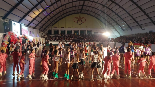 Y parece que fue ayer. El Club Patín Huesca celebró por todo lo alto la trigésimo quinta edición de su tradicional exhibición en un pabellón abarrotado por cerca de 1.500 personas. Tres décadas y media, de actividad, que se dice pronto. Los 170 patinadores disfrutaron de una gran fiesta en “Oscapoly”, un recorrido urbano sobre ruedas que fascinó a los espectadores.